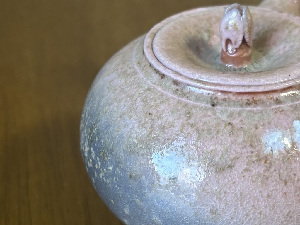 【No.2025035】190 ml / 99,000 JPY 2025年12月1日 急須 自然釉がかかった,桜急須です Sakura-teapot covered with natural glaze. price: 99,000 円/JPY(tax included) volume:190 ml (max) 商品について問い合わせる お届けまでの流れ メールフォームからご連絡 気に入った作品をメールフォームからお問い合わせ※一週間以内に返信いたします。 梱包・発送 工房で一つ一つ丁寧に梱包。お客様の元へお届けします。 お届け 2~3週間ほどでお届け。急須で淹れるお茶の時間をお楽しみください。 作品一覧へ戻る